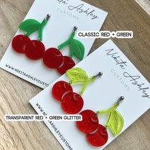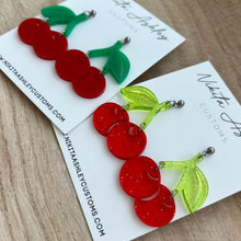 Love cherries? Bias a kpop idol that uses cherries as their symbol? Either way these cherry earrings are a fun way to show your love for the fruit or your bias! They measure about 1.5" at the widest point and have a drop of about 2".