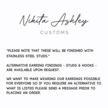 The earrings are finished with stainless steel ball studs but if you require an alternative to make wearing them possible please reach out prior to placing an order.