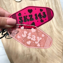 Inspired by the old school motel key fobs these keychains are cut from acrylic and come with color filled etched details.